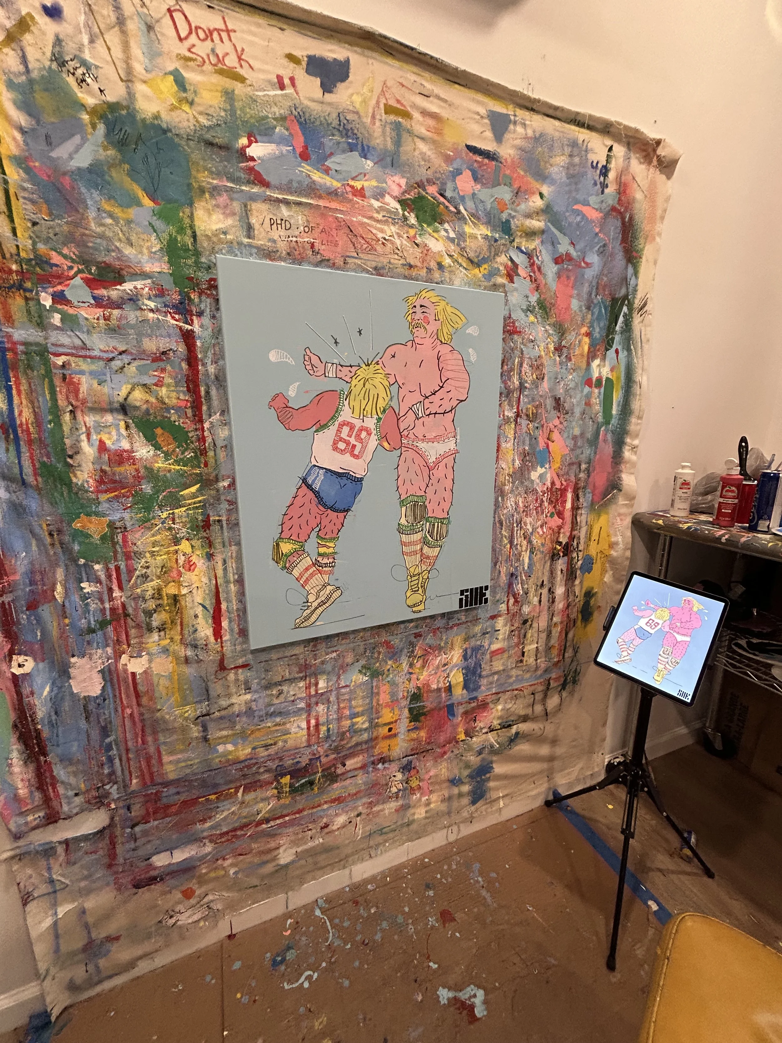 PAINTINGS WONDER $2,000.00 Sold out STRANGER $2,000.00 Oh Baby $1,600.00 Symphony $1,800.00 Sold out Timmy Trumpets $1,600.00 Sold out All My Friends Sale Price: $2,000.00 Original Price: $2,500.00 Sale Wine, Dine And Clotheslined $1,800.00 Sold out Six Shooter Sally $1,800.00 Sold out Slap It $1,600.00 Sold out Burst $2,000.00 Sold out Get Out Of The Studio Sale Price: $1,400.00 Original Price: $1,600.00 Sale Mini Me Sale Price: $1,400.00 Original Price: $1,600.00 Sold out Knuckle Head $1,400.00 Sold out Couple Of Buds $1,200.00 Sold out Spicy $1,600.00 Sold out Crop top Cowboy $1,400.00 Sold out Rachel the Radical $1,400.00 Sold out The Magnificent Mr. Daly $1,200.00 Sold out Gaslight $1,200.00 Bossy Boss Man Sale Price: $1,000.00 Original Price: $1,200.00 Sold out Hell of a Hound Sale Price: $1,000.00 Original Price: $1,400.00 Sale Shreddy Eddy Sale Price: $1,200.00 Original Price: $1,600.00 Sold out No Hands In Soccer $1,600.00 Sold out Big Man Benny Sale Price: $1,200.00 Original Price: $1,600.00 Sold out The Strongest Guy In The Entire World Sale Price: $1,000.00 Original Price: $1,400.00 Sold out Speed Bumps $1,600.00 Sold out Fastman Frenchie Sale Price: $1,200.00 Original Price: $1,600.00 Sold out REPENT! Sale Price: $1,000.00 Original Price: $1,400.00 Sold out Trap House Over Yonder $1,600.00 Sold out White Rock Lake $1,600.00 Sold out DANG! $2,500.00 Goodbye Summer Sale Price: $1,500.00 Original Price: $2,000.00 Sold out Sexual, Suggestive $2,500.00 Sold out Lover Boy $1,600.00 Sold out Father Nike Sale Price: $1,500.00 Original Price: $2,500.00 Sold out